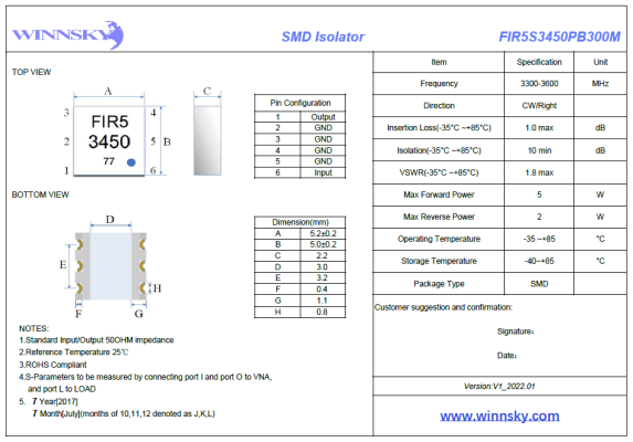 WINNSKY Ultra Compact SMD RF Circulator&Isolator
